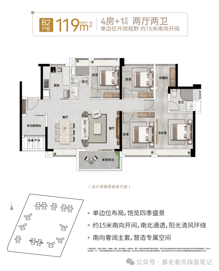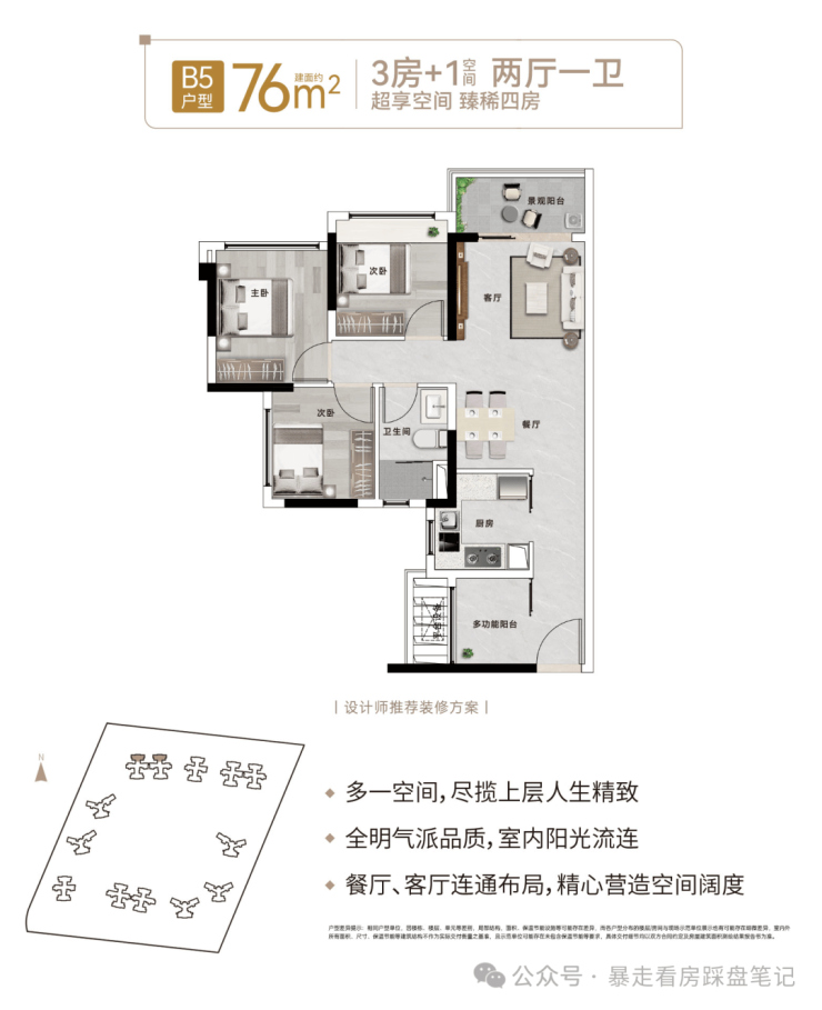 🔅约76-88㎡3房+1空间、119-194㎡4房+1空间至五房,正南向阳光户型,+1空间更实用。