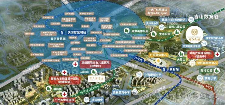 🔅项目西侧约1公里珠吉路沿线,规划建设中山大学附属第六医院(珠吉院区)。未来建成后将升级为中山六院主院区,打造成为集医疗服务、教学科研、预防保健于一体的现代化公立综合性智慧三甲医院,项目预计于2027年12月正式竣工验收。