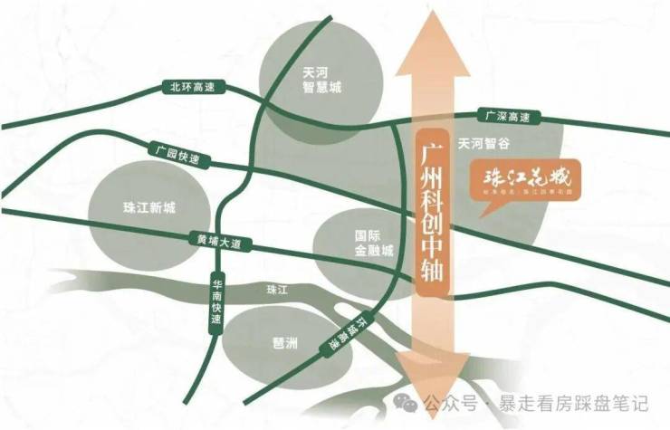 🔅珠江花城占位广州第三科技中轴,毗邻天河智谷。茅岗路一线直达鱼珠CBD,直线距离约6km享珠金琶三大CBD繁华生活。