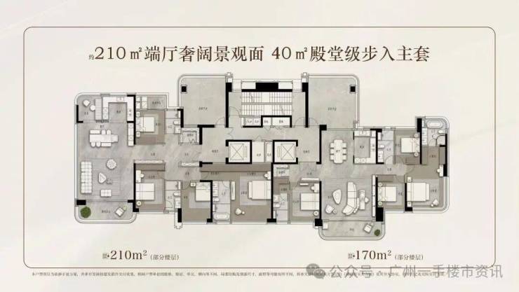 保利天曜南北两地块的住宅规划有所不同,南地块规划建设7栋板式大平层住宅,户型为140㎡、170㎡、210㎡左右的四房;北地块则规划建设3栋40层以上的超高层住宅,户型为120㎡四房和90㎡三房。
