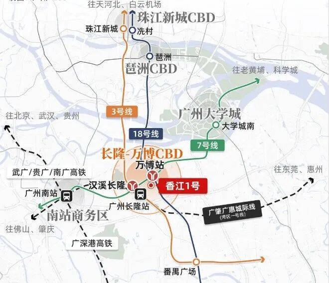 香江1号交通便捷,社区临近地铁18号线南村万博站,可快速接驳珠江新城及天河核心区域。周边道路体系完善,包括快速路、高速路及城市主干道,多条公交线路覆盖,形成多维立体出行网络。