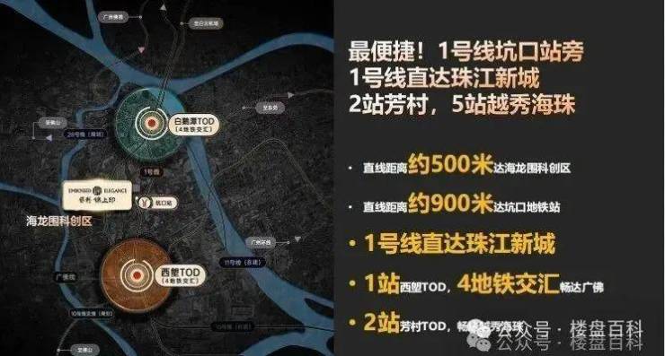 地铁——距离广州地铁1号线坑口站约900米,1站达西塱站4地铁交汇畅达广州,2站芳村,5站越秀海珠,一线直达珠江新城;