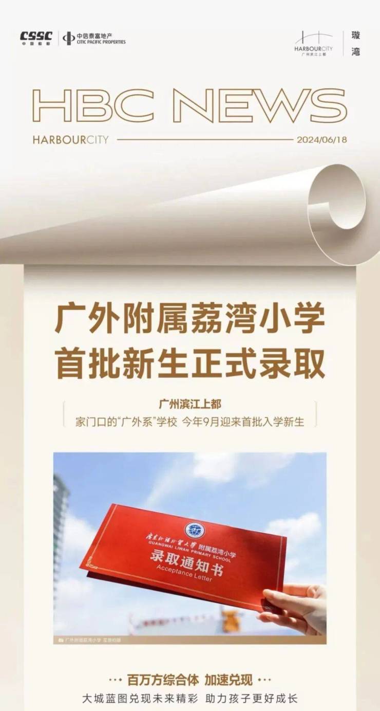 广外荔湾小学已开学,幼儿园也计划年底招生,你可以亲眼看到,孩子下楼走几分钟就到学校,完全“目送式”教育。