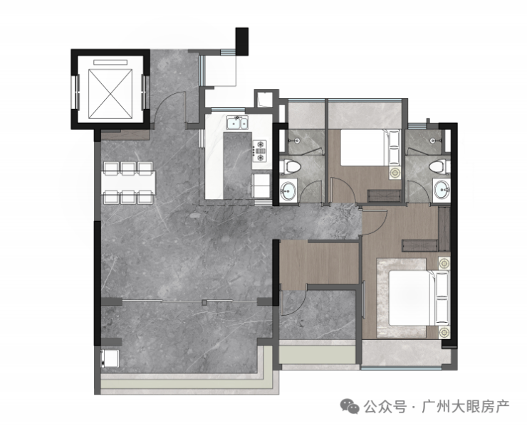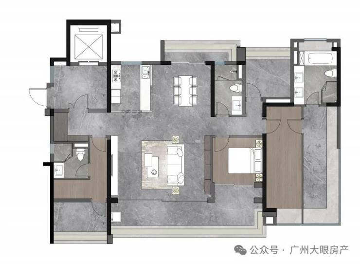 107-170 ㎡全新板奢大平层,3 户专梯入户设计,超新规使用率达 115%以上,是全广州板楼使用率最高之一