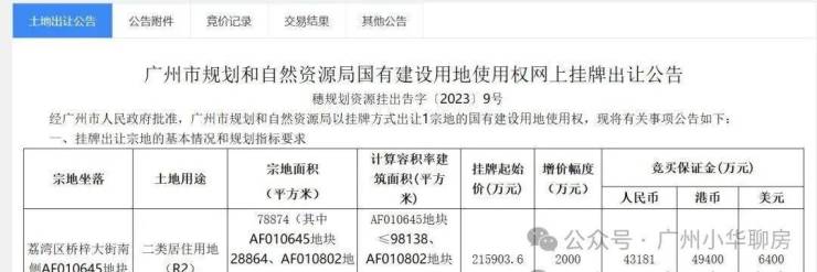 2023年4月,广东建工联合体以21.6亿底价竞得桥梓大街南侧地块,折合楼面价2.2万/平。