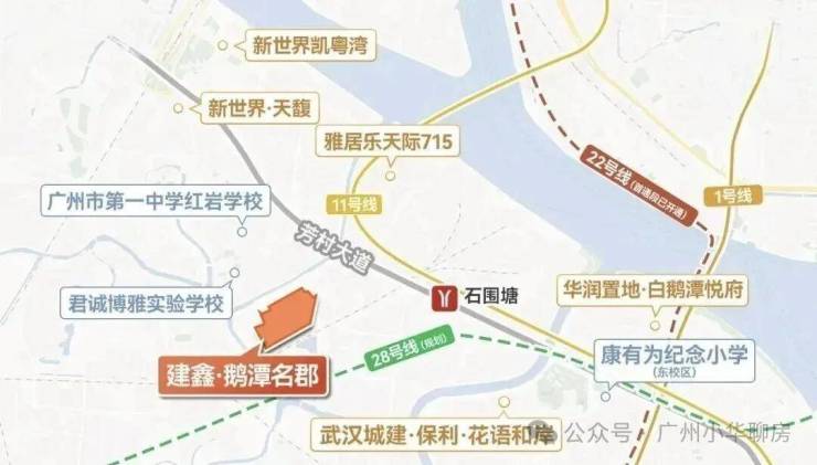 荔湾桥梓大街南侧地块位于白鹅潭板块,临近荔湾区府和芳村大道中,与在建11号线石围塘站只有800多米,去天河、海珠都会比较方便。
