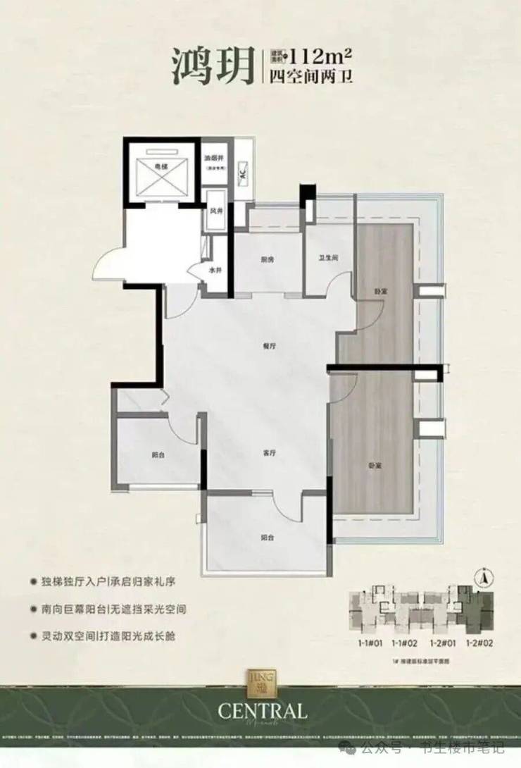 主力户型:建面约 109-122㎡四房,南北对流,适配多孩家庭或改善型需求。