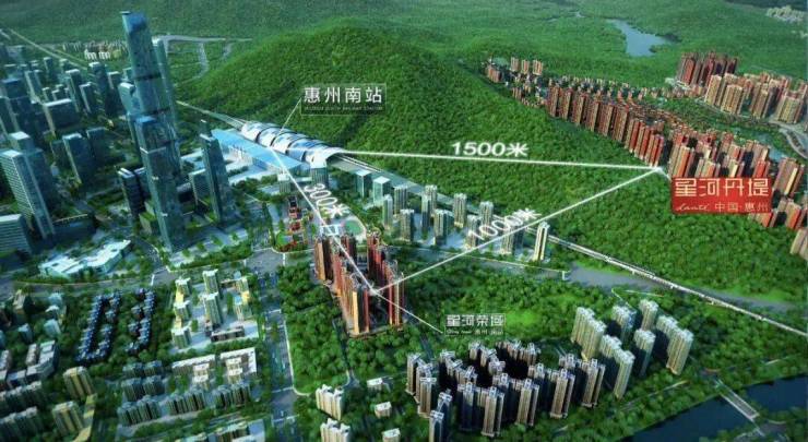 星河丹堤位于粤港澳大湾区腹地, 紧邻双铁枢纽——惠州南站,项目总占地约150万㎡ ,建面约260万㎡,是星河集团在惠州的开山之作。