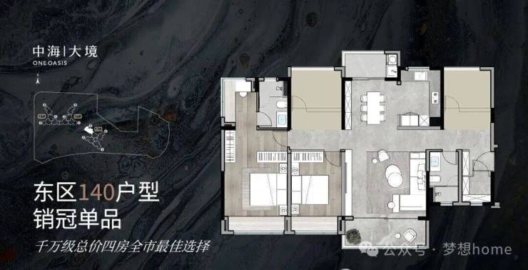 东区为住宅组团,有滨水园林,近地铁和商业,有精英要的奢享及高效;
