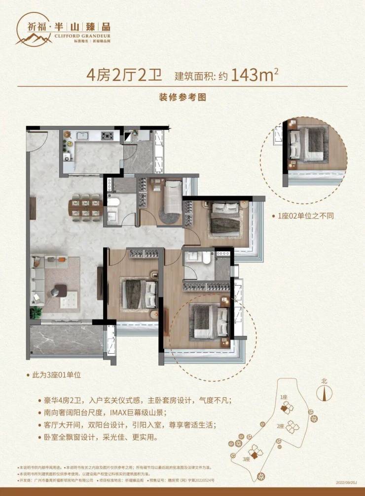 对应户型:82方两房北向、110方三房北向、121方三房南向、143方四房南向