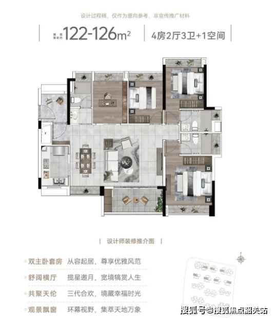 刚需户型方面,70㎡2+1房、90-96㎡3+1房紧凑实用,三开间朝南、全景飘窗设计,提升居住舒适度,灵动空间可改造为书房、儿童房,适配年轻精英或小家庭[2]。改善户型方面,126㎡4+1房为爆款户型,总价750万起即可拥有双主套设计,兼顾三代同堂隐私与舒适度,放眼珠金琶CBD极具稀缺性;143㎡5+1房空间开阔,适配多人口家庭,满足家族居住与日常社交需求[1][3]。