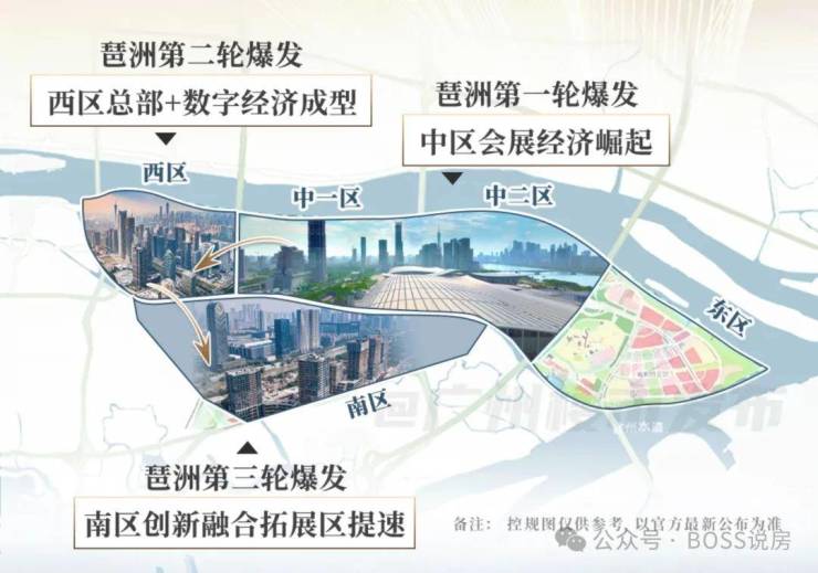 琶洲南区是琶洲进阶扩容的重要平台,聚焦数字创新产业发展及高品质配套,承接CBD产业外溢、居住功能。琶洲算力中心预期于2025年10月竣工,助力打造广州算谷产业新高地。