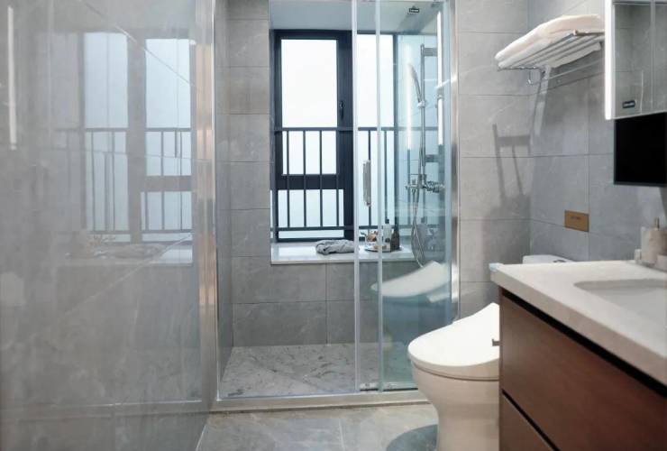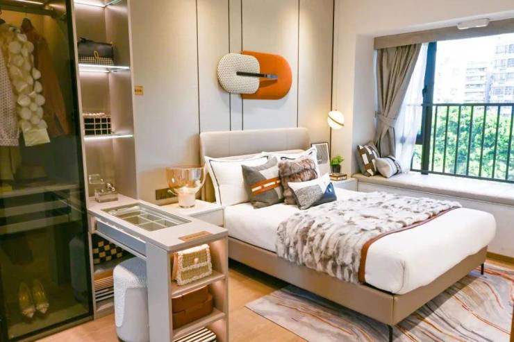 这样的奢阔阳台,真正做到了南向望江景色,北向无敌城景,同时也能丰富日常生活:放架跑步机,或是放上帐篷、茶具,都不会觉得拥挤。