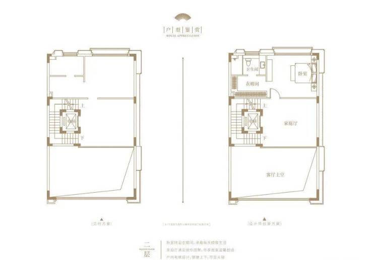 上叠,建面约240㎡,独立入户,首层是独立会客厅和长辈房,二层是三间卧室。