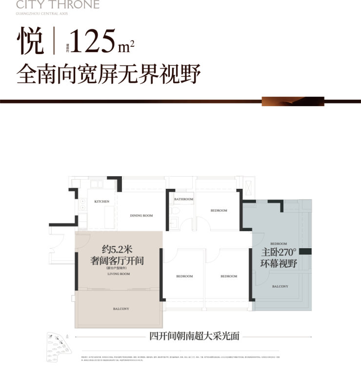建面125㎡四房,均分别在32层高楼栋,总货量270套左右,让我们一起看看户型图