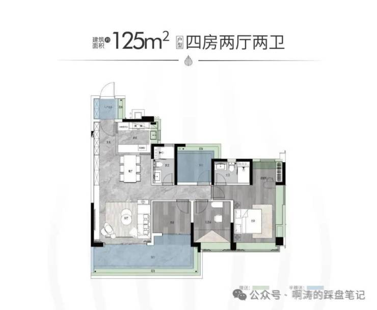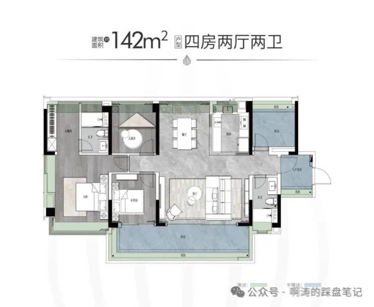 【户型面积】建面约125-142㎡四房两厅两卫/214-319㎡大平层