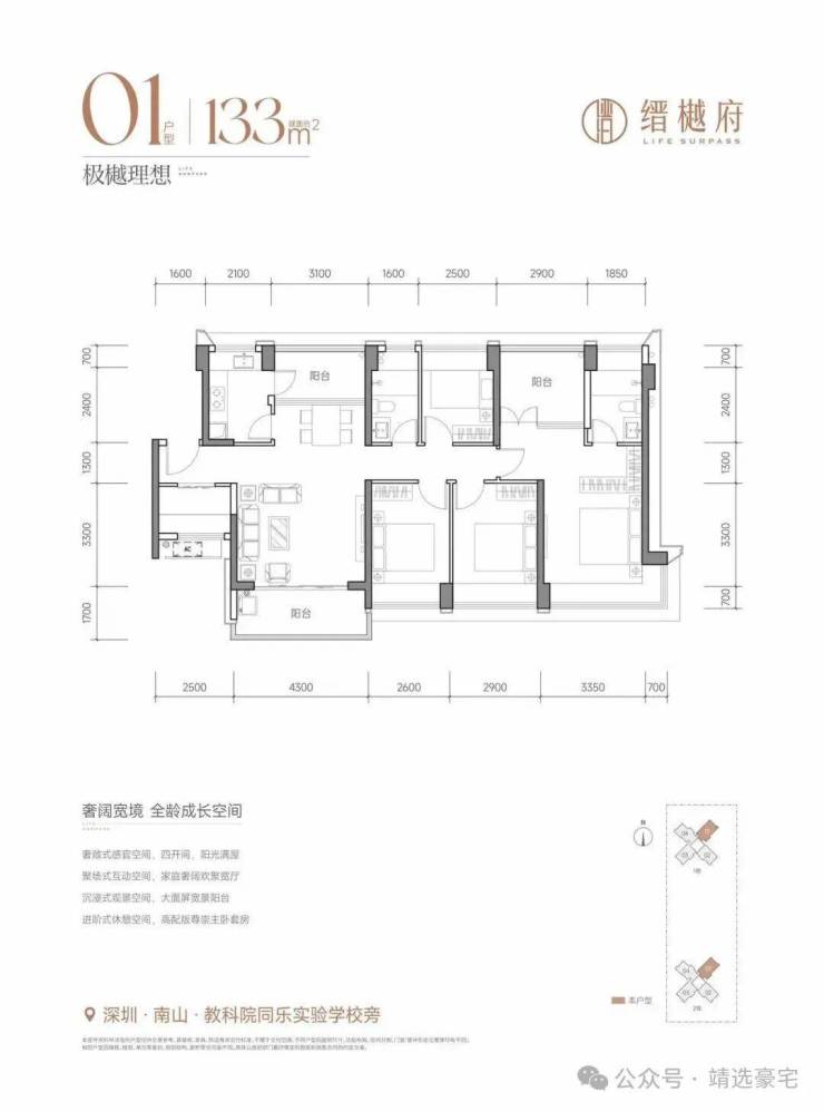 南山实验教育集团园丁学校、深圳市博纳学校在旁,12年教育资源一步到位(含规划中共有11所幼儿园+5所九年一贯制+1所小学+1所高中)。