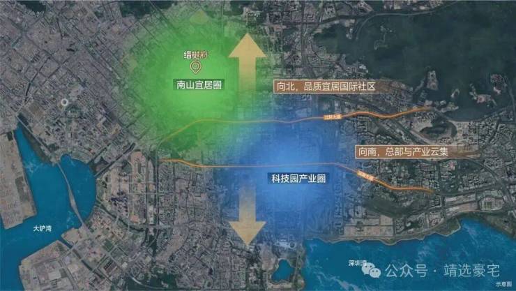 缙樾府落位深湾核芯,周边三轴拱卫,深圳五大顶级总部基地环绕,联动西丽高铁新城增长极,形成立基于深湾之上的产业价值能级跃升。