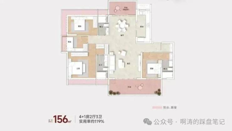 最稀缺的约156平四房,可以扩展成4+1房2厅3卫的格局。