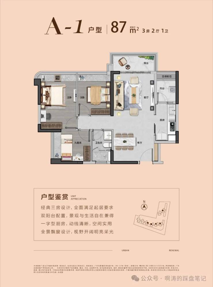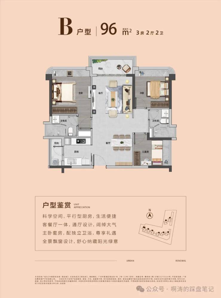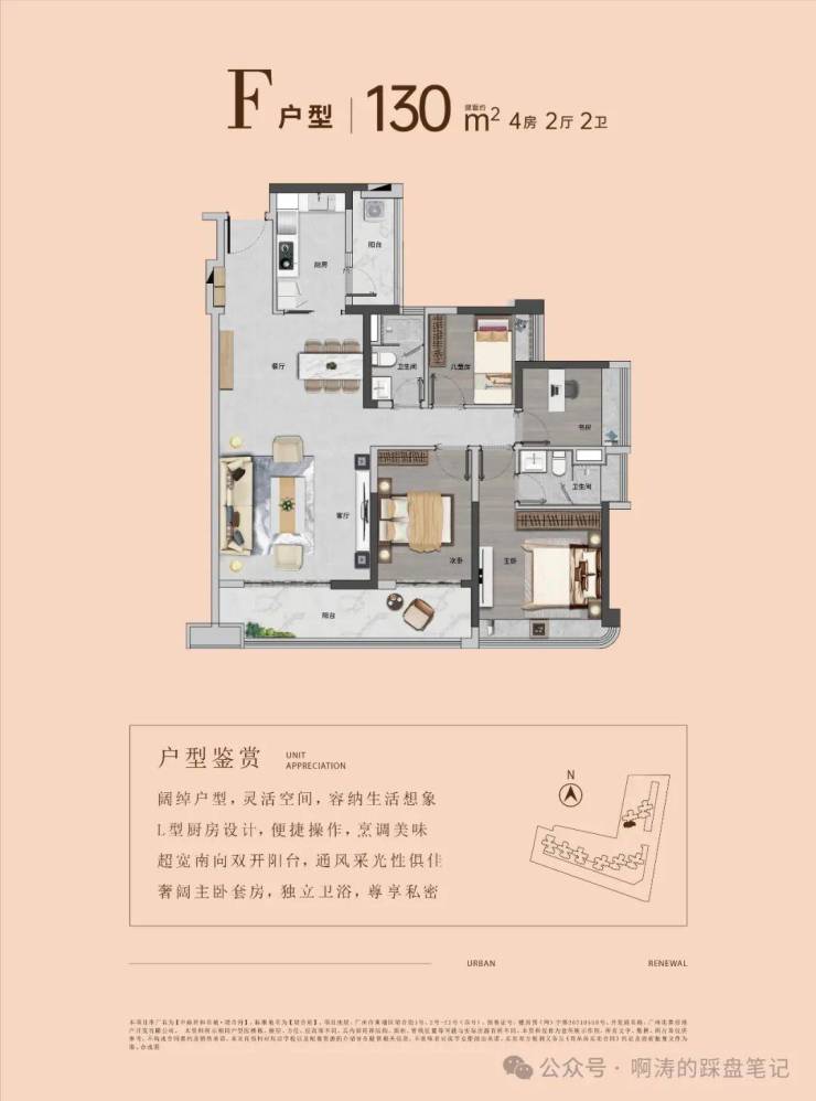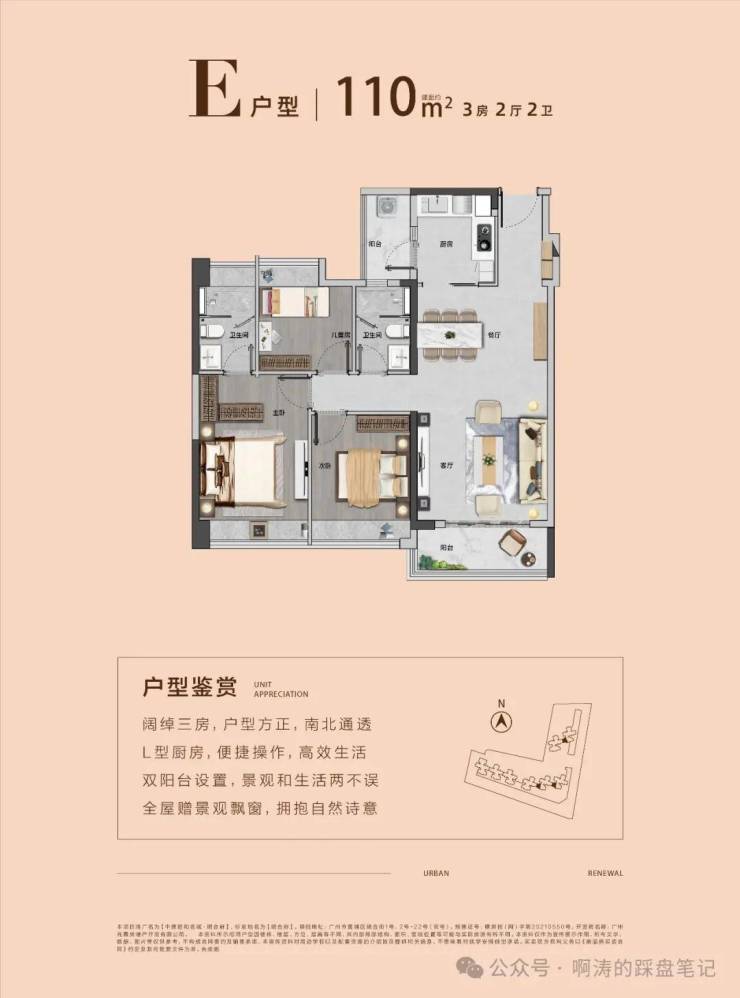 产品建面约86-130㎡三至四房,L型建筑布局,超宽楼距,采光充沛。