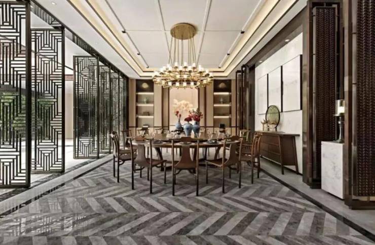 负二层空间可打造成私家宴会厅,设有可容纳高达18人的中心聚会餐厅,餐客通厅大气岿然,无论是家人欢享还是招待宾朋,皆显赫端仪,写照着主人的阔达心境。同时配备中西式厨房,保姆房,私人酒窖,品酒区、健身区、容纳2-3台车的宽阔地下车库一应俱全。并且宴会厅与庭院中间设置5扇开敞通透的的中式屏门,使得宴会厅与中心庭院融为一体,一边享受宴会的雅致,一边欣赏庭院美景,别有一番风味。