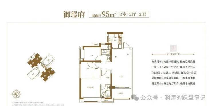 户型亮点:北入户,多功能空间面积最大近60㎡