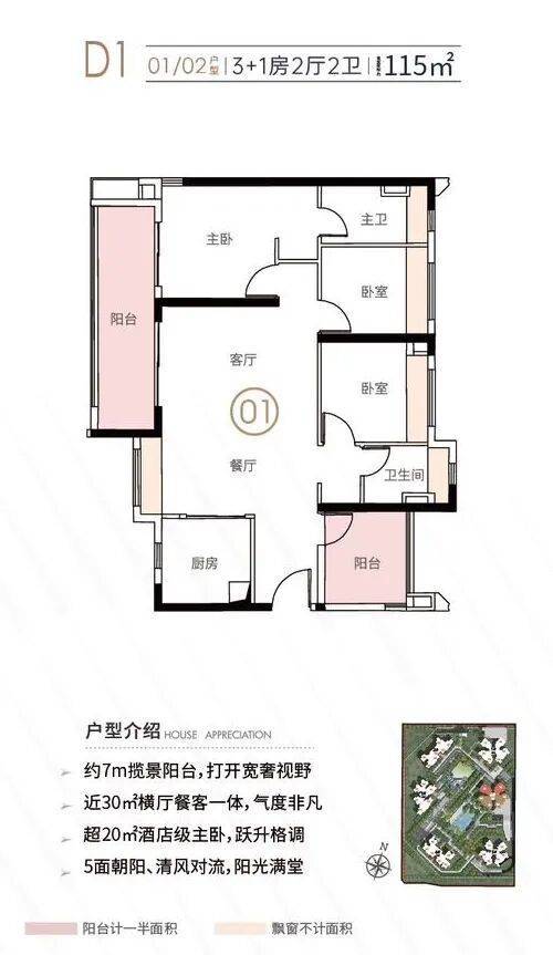 还有建面约115㎡3+1房2厅2卫,做到五面朝阳,空间尺度更是令人惊喜。