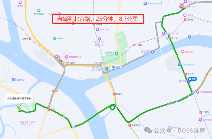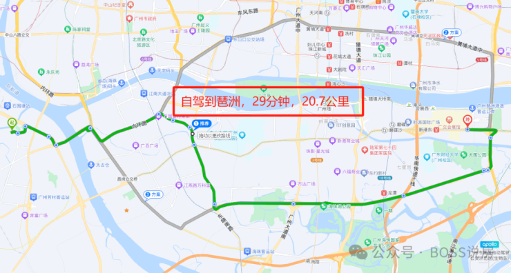 下面将会测试从项目项目出发,到北京路,珠江新城,琶洲,金融城的具体时间;