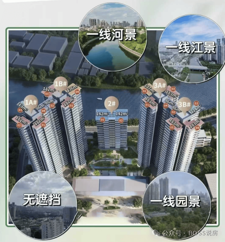背靠花地河,南望荔湾全景,每栋楼利用巧妙的角度,做到了户户朝南,前后均无遮挡;