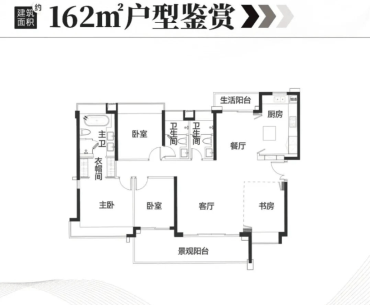 162㎡四房户型总价约650万上下,空间开阔,全南向布局搭配大面宽落地玻璃,双主套设计保障私密性,适合多代同堂居住。