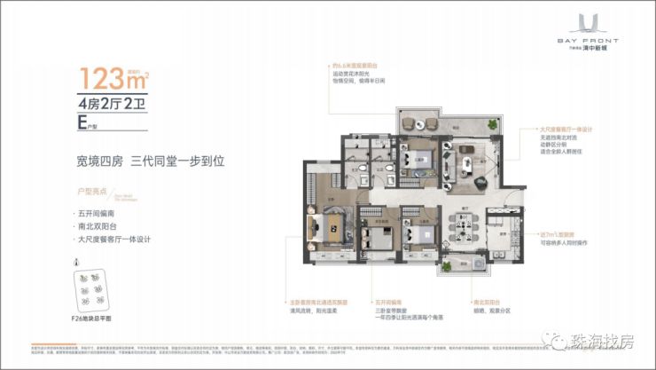此外,建面约123m² 四房两厅两卫,除了功能更完善外,还大面积朝南,不缺阳光不缺清风,舒适度实现最大化。更有约6.6m景观阳台,运动、赏花、喝茶……让你生活休闲两不误。