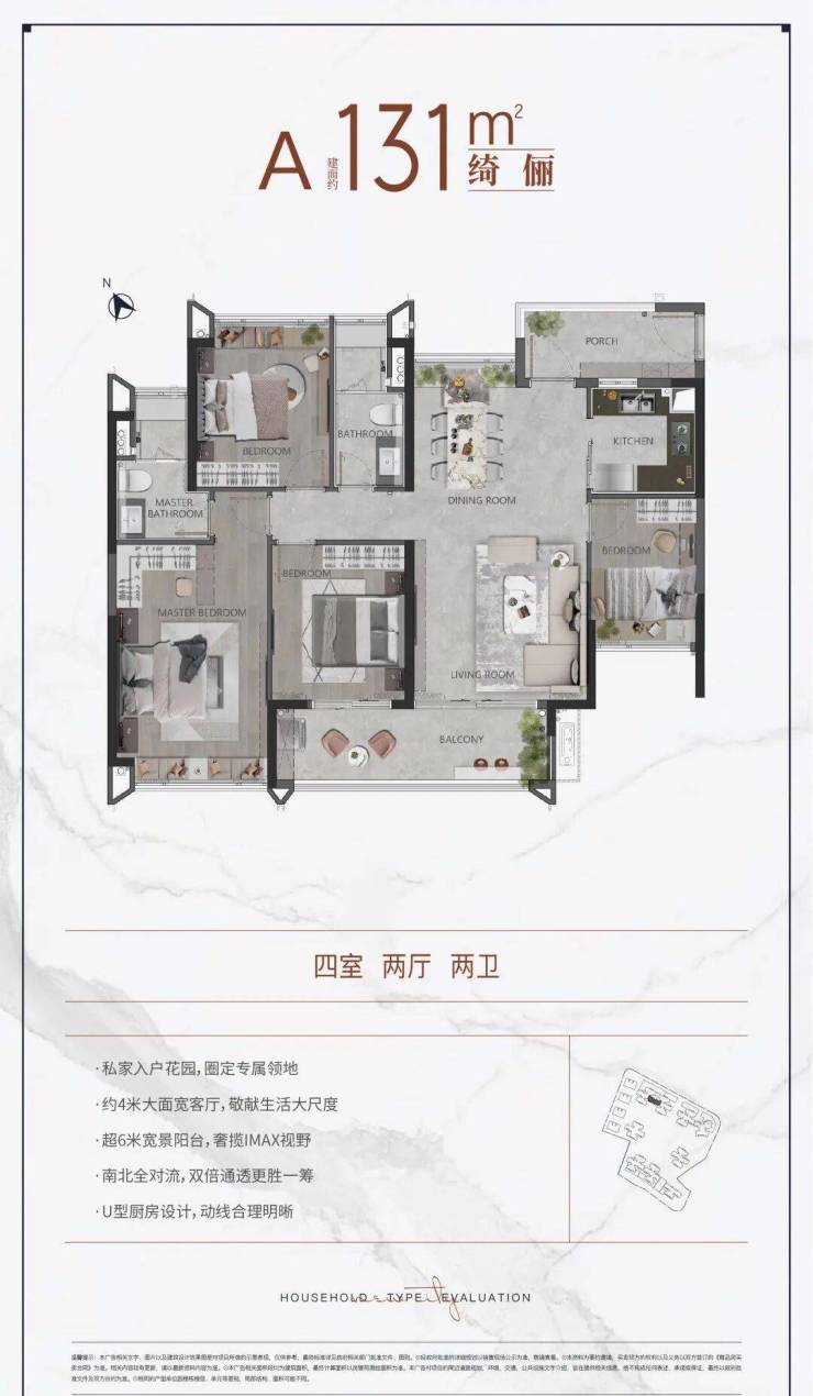 建面约131平米纯南北通透4房2厅2卫