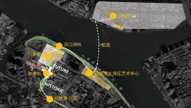 此外,项目还将整合文保地块打造 “鹅潭坊” 区域,串联鹅潭坊、万象城、滨水广场到白鹅潭大湾区艺术中心、沙面,打造一个全新的旅游目的地。