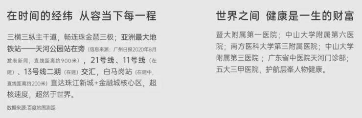 教育:配建公立幼儿园,对口华颖外国语学校(九年一贯制,未官宣),3公里内有天河外国语学校、暨南大学等优质教育资源。