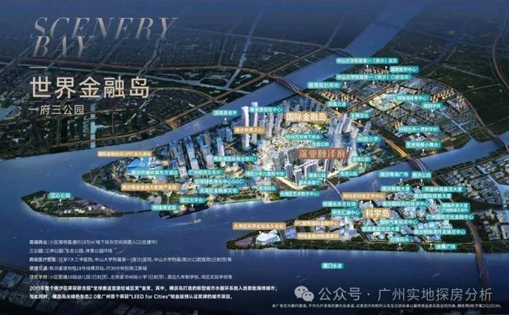 1、地段优越:位于南沙明珠湾国际金融岛横沥岛尖,是南沙“双岛(金融岛+科学岛)”战略的核心节点,周边有国际金融论坛(IFF)永久会址、期货交易所等高端产业资源,未来发展前景广阔。