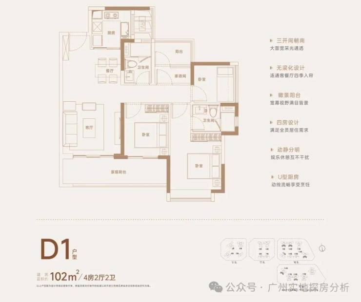 主力户型:以102-142平方米的四房为主,涵盖4房2厅2卫、4房2厅3卫等格局,部分户型带有观景阳台、书房、衣帽间等功能空间,满足改善型家庭的居住需求。