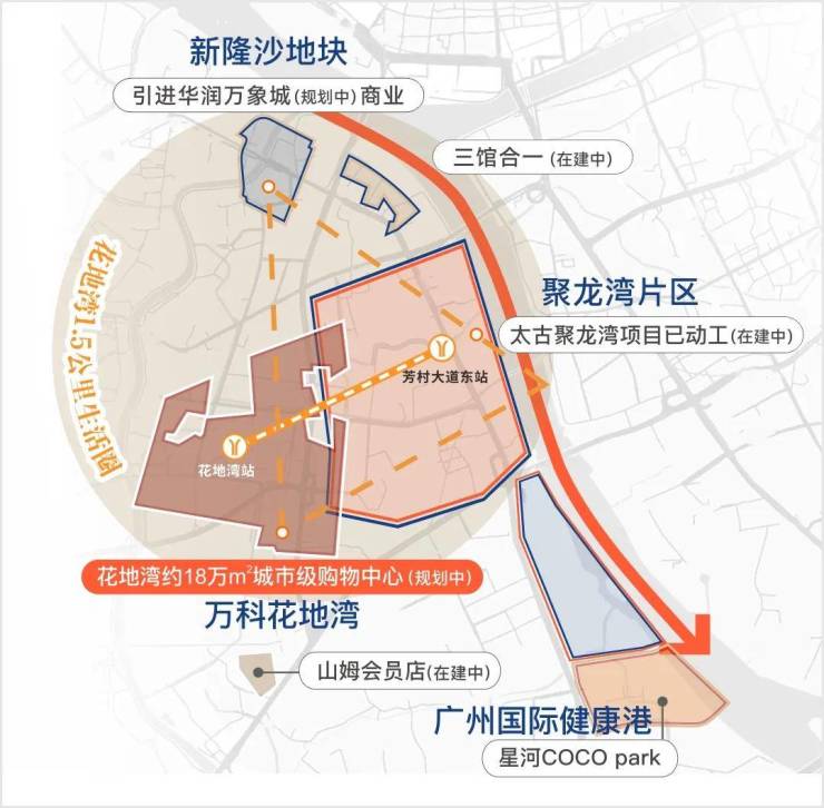 生活配套丰富,拥有 3 座潮奢商业坐标,全国首座双太古 [在建中]、26.9 万㎡华润万象城 [在建中]、理想花地 18 万㎡城市级购物中心 [规划中],构建世界级商圈未来。