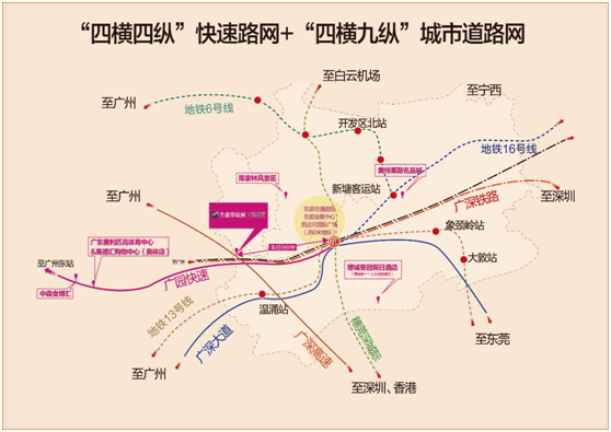 项目交通路网三横两纵,通达性强。紧邻广园、广深、107国道三干道,25分钟瞬达天河。拥开创大道、源章大道两条南北主线,10分钟车程连接萝岗科学城及新塘中心。规划中的穗莞深轻轨及地铁13线路将途经本社区,交通核心优势得天独厚,享受极致便利。