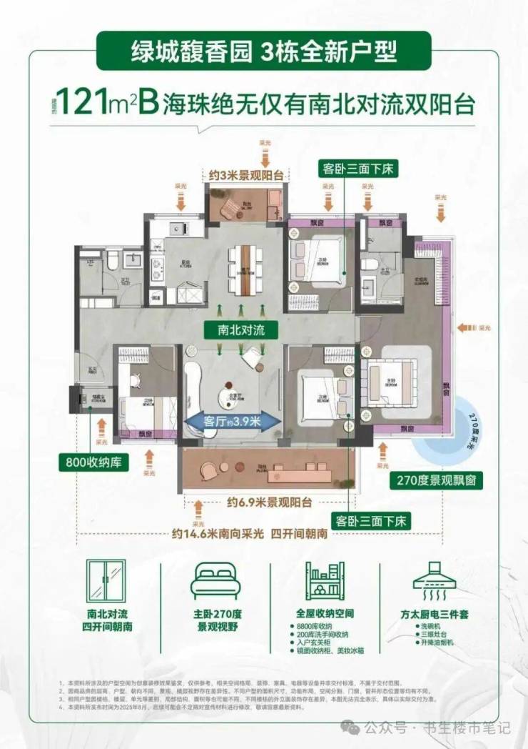 ◎面积段:约84-130㎡全南向·超高使用率·新规三至四房