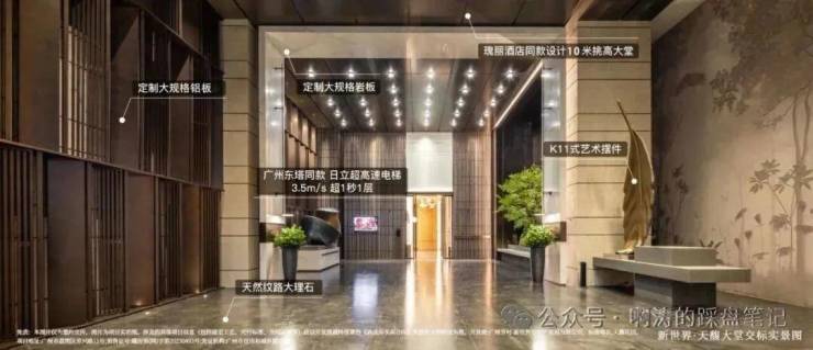 约10米挑高艺术入户大堂,与瑰丽酒店同源设计。东塔同品牌高速电梯,超1秒1层,几乎是全广州最快的归家客梯。