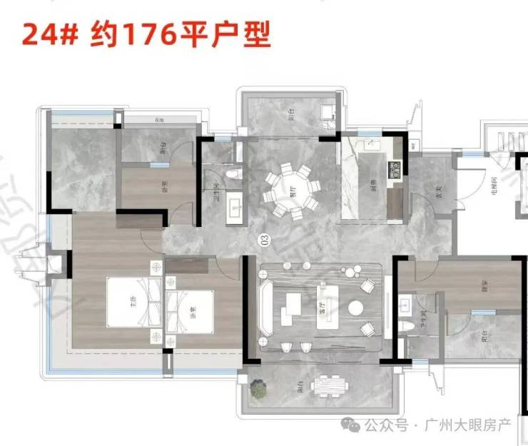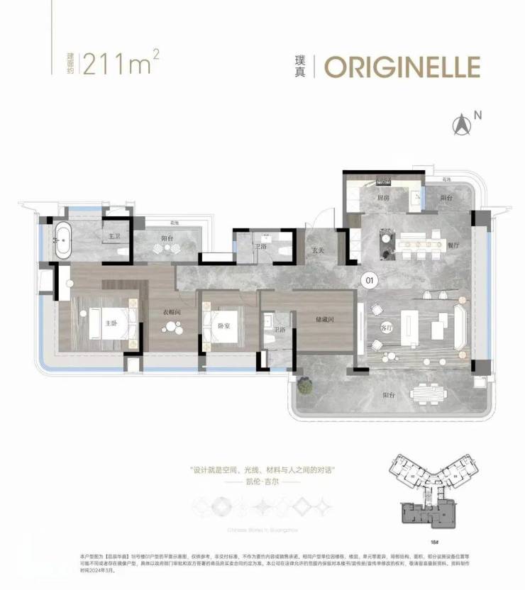 230平户型拥有私家电梯厅、双主套、独立佣人房、南北对流、LDKB大方厅、主卧L型270°飘窗等,大大提升了整体的空间体验。