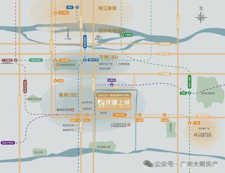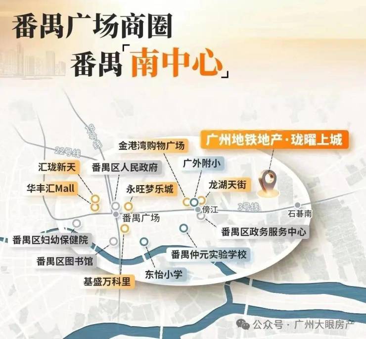 依托3号线半小时共享广州黄金三角CBD+万博CBD+南沙CBD商圈配套;商圈金脉之上,串联万亿CBD及繁华都市商圈。