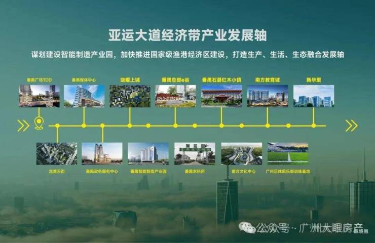 值得注意的是,以番禺广场商圈为起点,连通到莲花湾汽车产业带,“第二条南大干线”千亿产业轴已在酝酿。亚运大道沿线,密布番禺总部E谷、智能制造产业园、丰邦智造产业园等节点,这里将是番禺的“智核”所在,也是番禺未来所在。