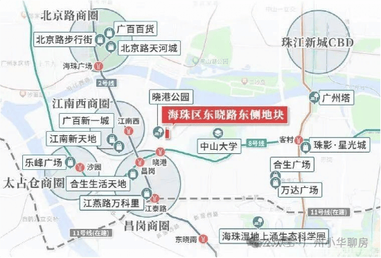 三地铁交汇,项目距离晓港地铁站仅约600米(数据来源:百度地图)