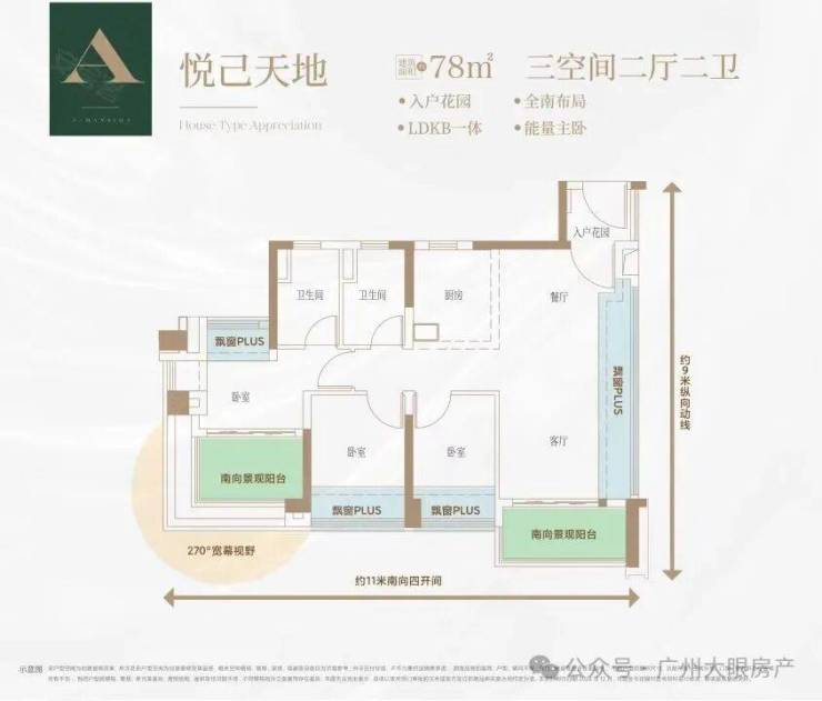 约11米南向4开间面宽,100%的房间和客厅全朝南,让每位家庭成员畅享阳光和风景。