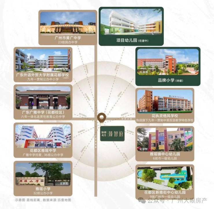 周边直线距离约1.5公里内涵盖小学、初中、高中等全龄段教育资源,雅瑶小学、广雅中学、黄广中学等好学校环伺,家门口铺就成才路。(数据来源:百度地图)