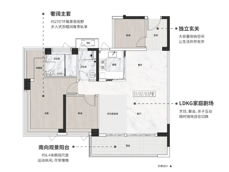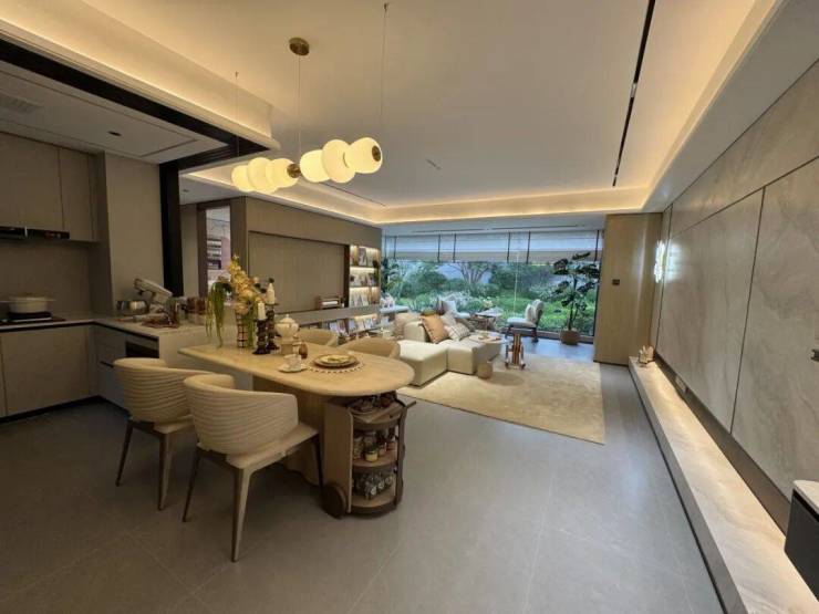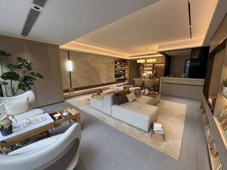 步入样板间,超大尺度三面宽朝南格局瞬间拓宽视野边界,引自然光肆意流淌。