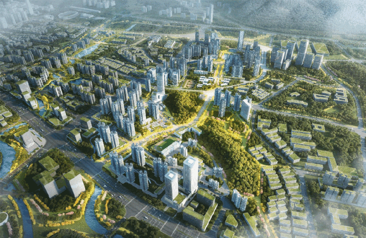 中建玖合未来方洲规划非常宏大,会负责配建住宅、商业、公寓、办公、酒店、公园、学校等诸多内容,和华润新溪旧改、万科城市之光连成一片开发。