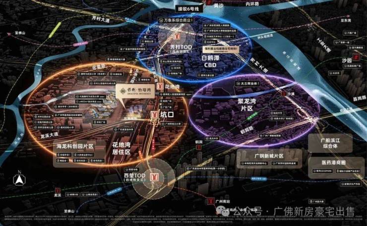 项目位于白鹅潭核心居住区,北牵白鹅潭CBD,东接聚龙湾,虹吸两端红利。得益于先天区位优势,项目还被划入珠金琶半小时生活圈,拥有的“城市核心”生活圈。