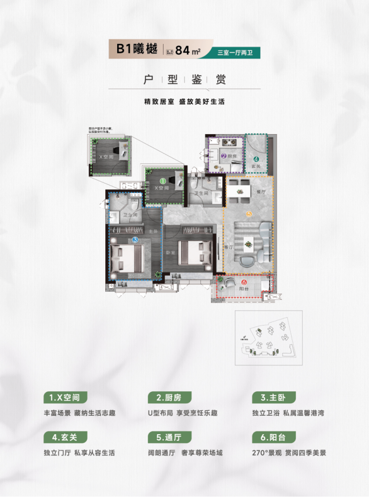 主推建面约77-106㎡空中台境美宅,三房起步,户型兼顾实用与舒适,精准匹配不同家庭结构需求,可住可租,实现价值最大化。